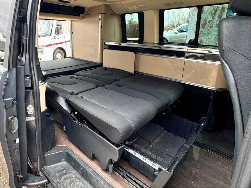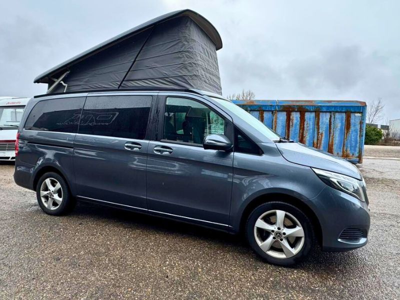 Mercedes Marco Polo 250 D 4Matic, en estado impecable y totalmente equipada para viajar con el máximo confort y tecnología. Con documentación al día y mantenimiento reciente, ofrece un interior premium con camas trasera y elevable, cocina de dos fuegos, fregadero y nevera de compresor. Dispone de asientos giratorios y eléctricos, climatización en cabina, cámara 360º, portón trasero eléctrico y puerta corredera lateral para mayor comodidad. Incorpora placa solar de 200W con regulador Victron Energy, batería AGM, ducha exterior, tomas exteriores de luz y agua, lunas tintadas con oscurecedores y un completo equipamiento de conducción con cambio automático, levas en el volante y volante multifunción. Una camper Mercedes Marco Polo ideal para quienes buscan un vehículo de uso diario, combinado con un vehículo para viajar con libertad, lujo y confort.