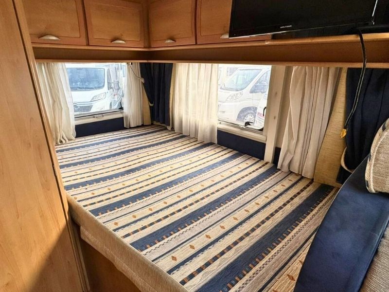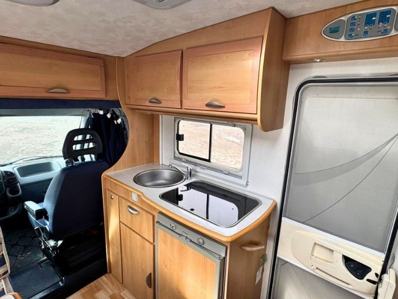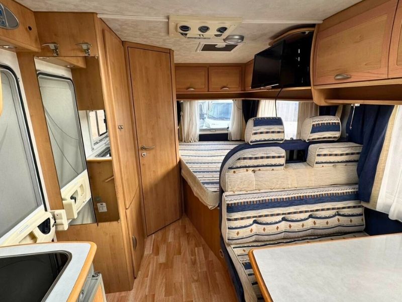 Autocaravana perfilada McLouis Glen 262, en muy buen estado y equipada para viajar con confort y autonomía. Con documentación al día, mantenimiento reciente y juntas exteriores nuevas, ofrece un interior cómodo y funcional con cama francesa, salón transformable, cocina de tres fuegos, fregadero y baño completo con ducha separada e inodoro químico. Incorpora calefacción Truma Trumatic C canalizada, nevera trivalente automática de 90L, toldo de 4,5 m, enfriador Viesa, antena satélite con TV y ventanas Poliplastic con oscurecedores y mosquiteras. Además, cuenta con aire acondicionado en cabina, cierre centralizado y cierre de seguridad. Una autocaravana McLouis ideal para disfrutar de viajes tranquilos con todo el equipamiento necesario.